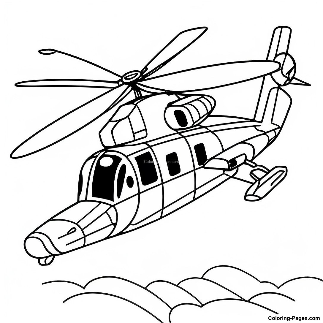 Realistic Military Helicopter Coloring Page