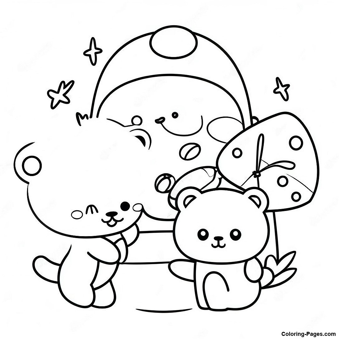 Download Printable PDF of Rilakkuma With Cute Friends Coloring Page