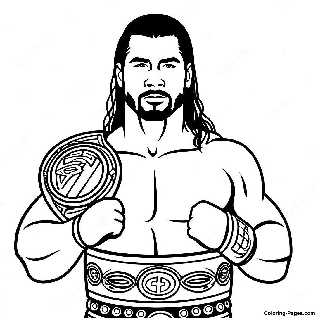 Roman Reigns With Championship Belt Coloring Page