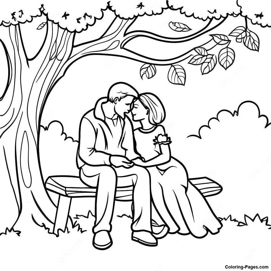 Download Printable PDF of Romantic Couple Under A Tree Coloring Page