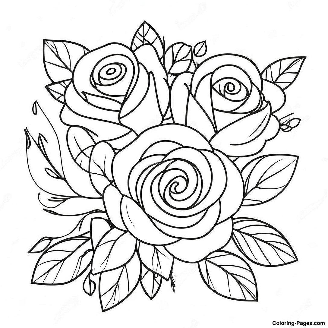 Download Printable PDF of Romantic Rose Bouquet Coloring Page