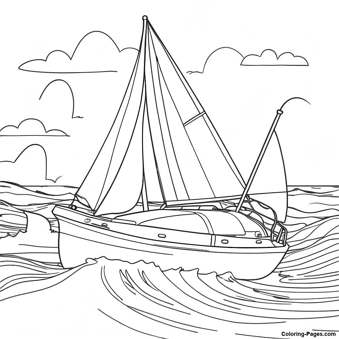 Download Printable PDF of Sailboat Racing On Waves Coloring Page