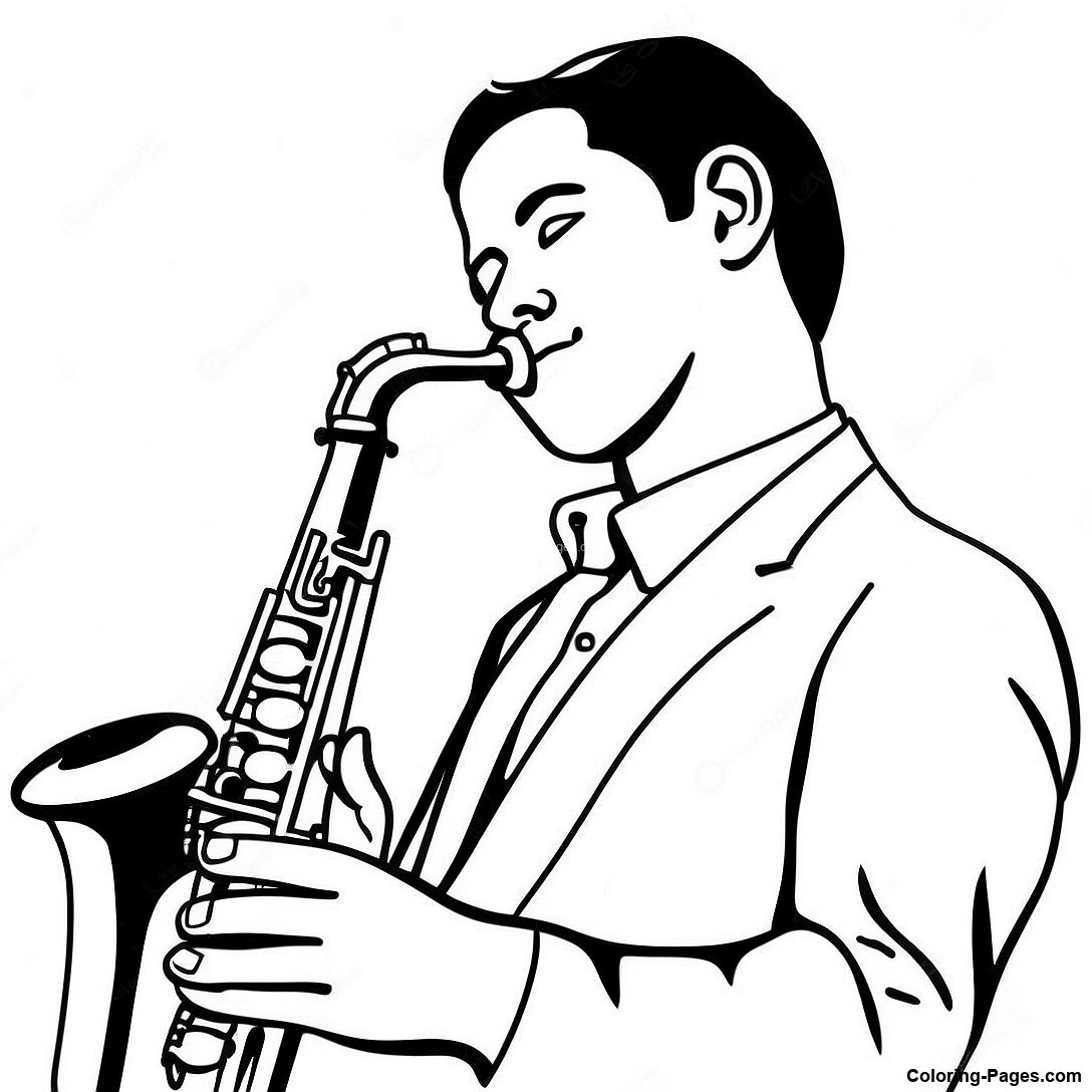 Download Printable PDF of Saxophone Jazz Player Coloring Page