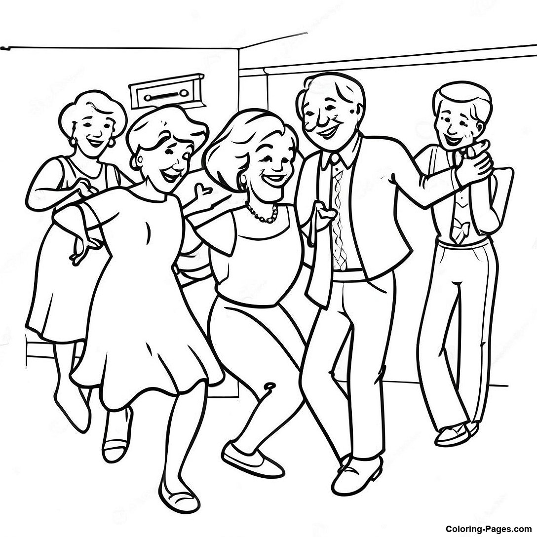 Download Printable PDF of Seniors Dancing At Party Coloring Page