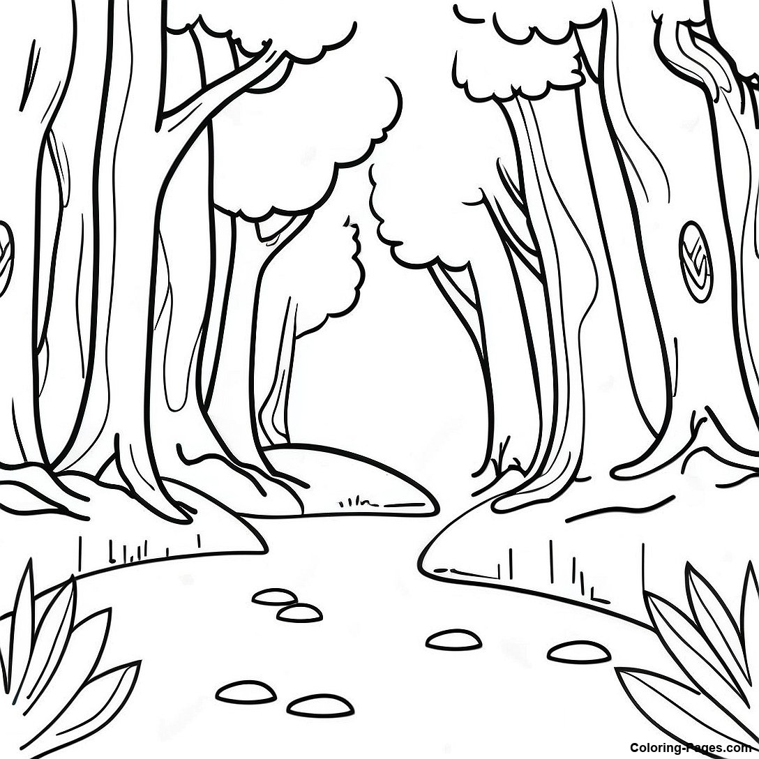 Download Printable PDF of Serene Forest Landscape Coloring Page