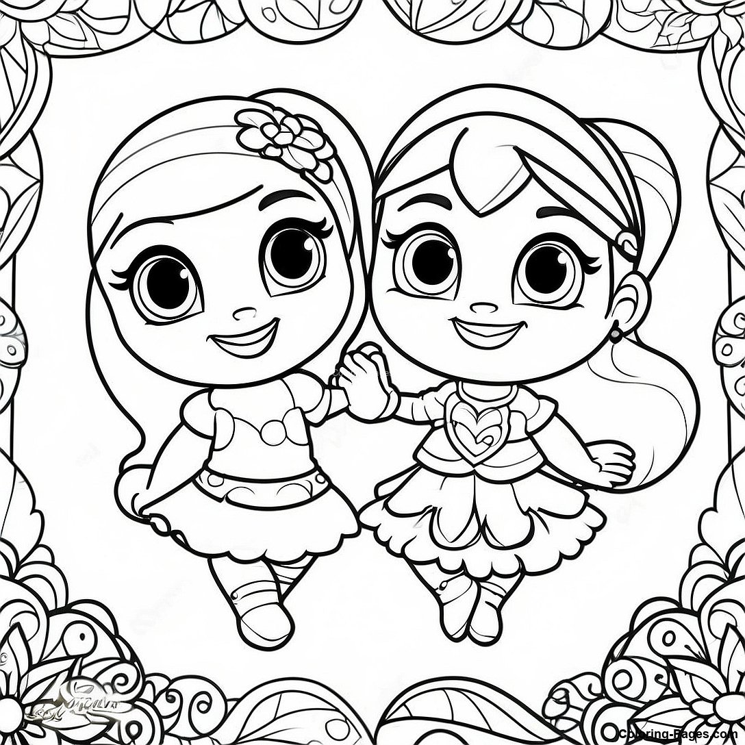 Download Printable PDF of Shimmer And Shine Fun Friendship Coloring Page