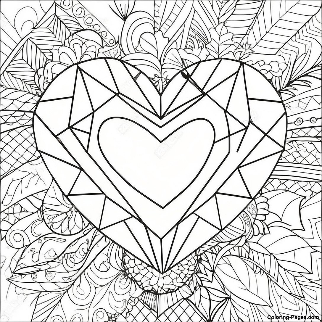 Download Printable PDF of Shiny Heart-Shaped Diamond Coloring Page