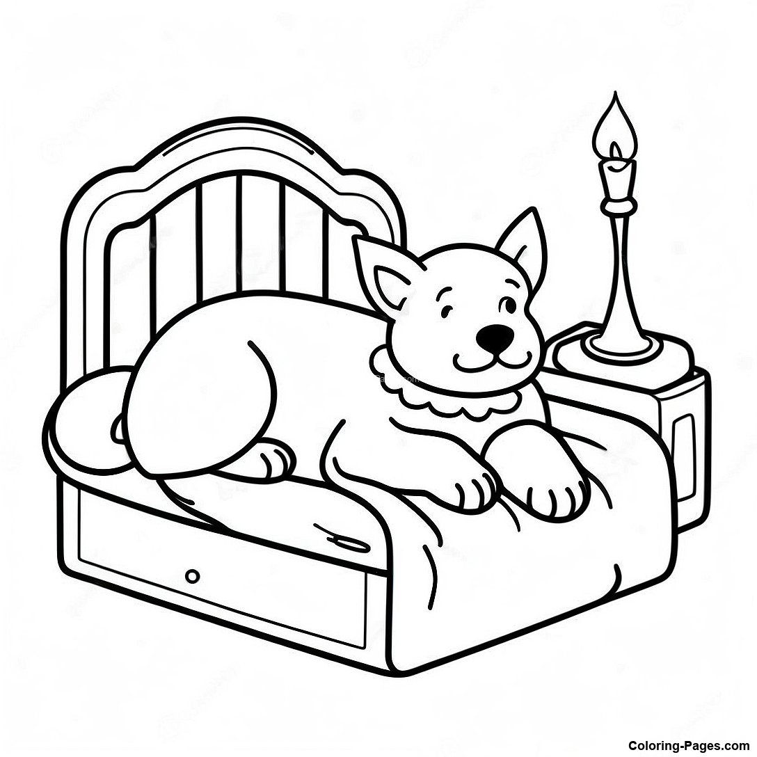Sleepy Dog On A Cozy Bed Coloring Page