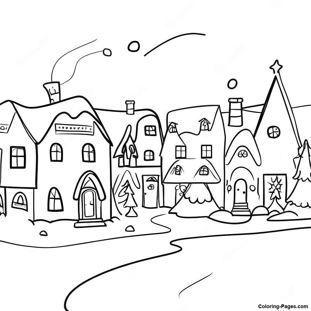 Download Printable PDF of Snowy Christmas Village Coloring Page