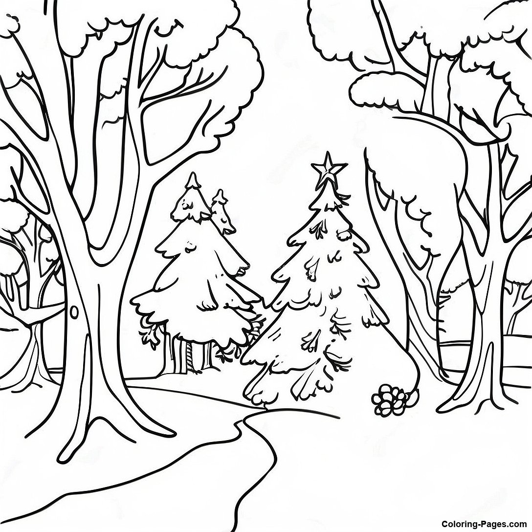 Download Printable PDF of Snowy Winter Wonderland Coloring Page
