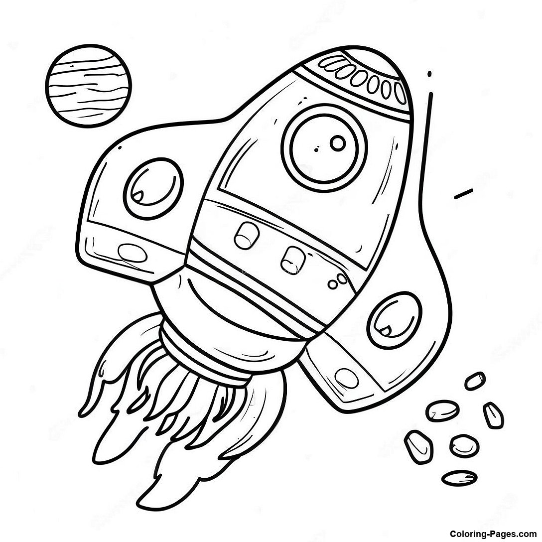 Futuristic Rocket Ship in Space Coloring Page
