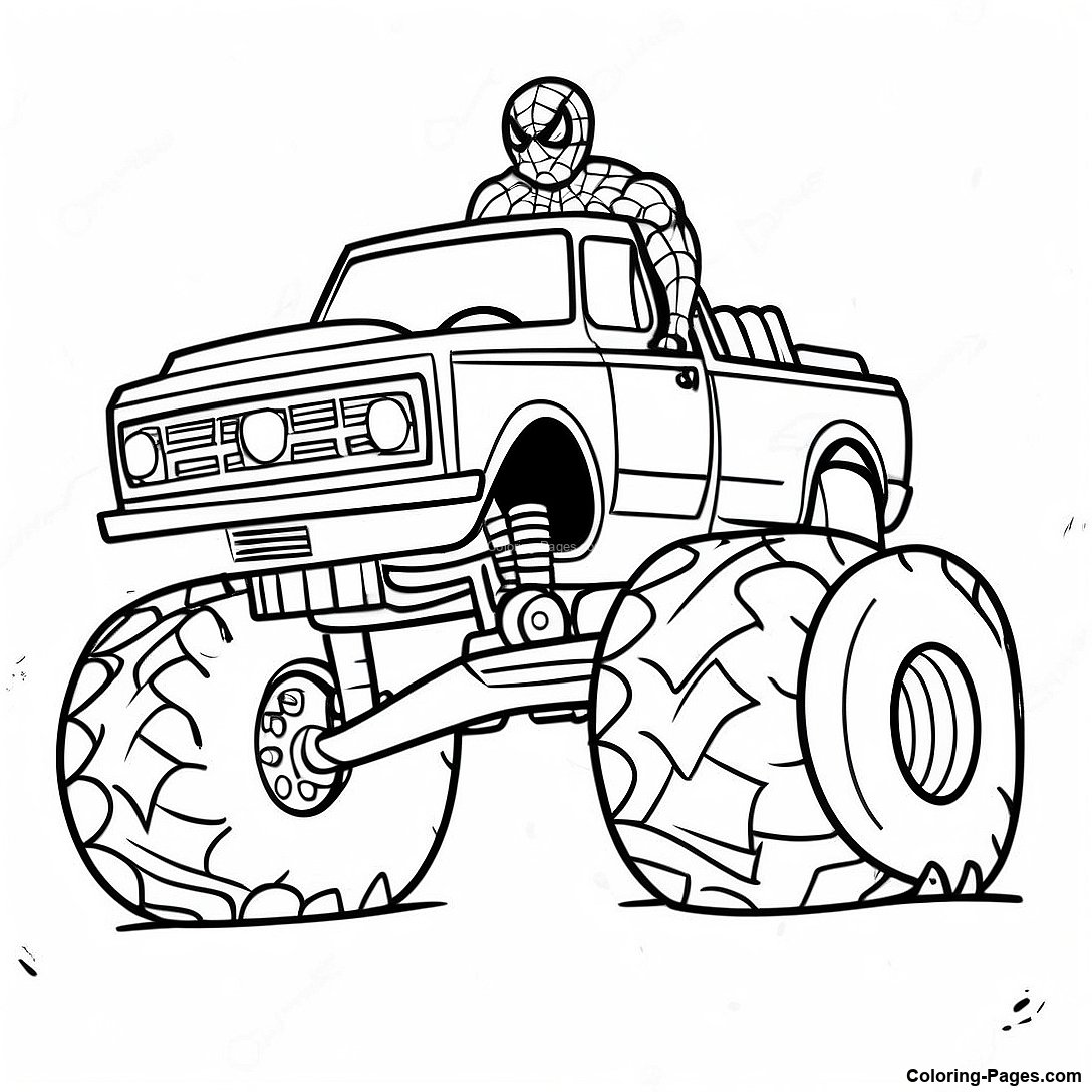 Spiderman Driving A Giant Monster Truck Coloring Page