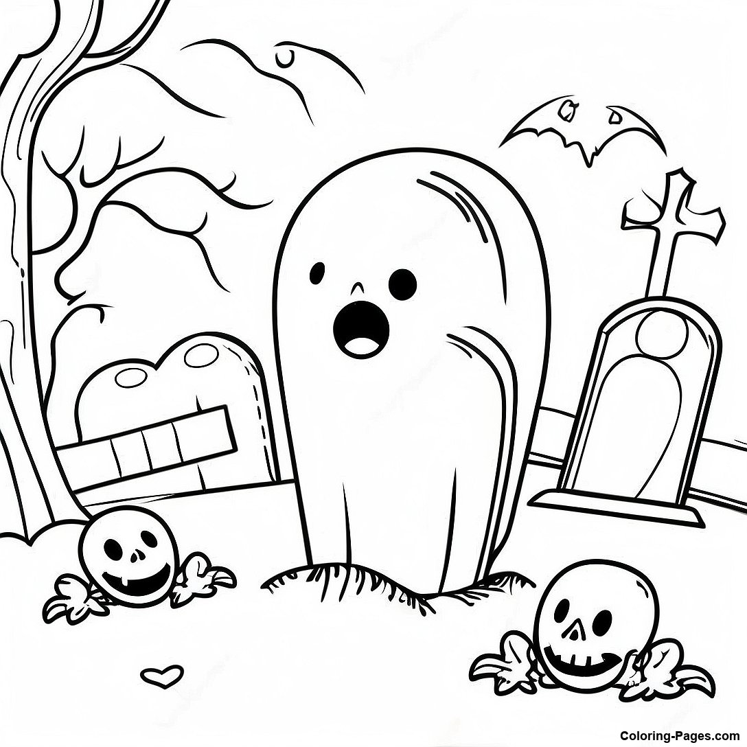 Download Printable PDF of Spooky Graveyard Coloring Page