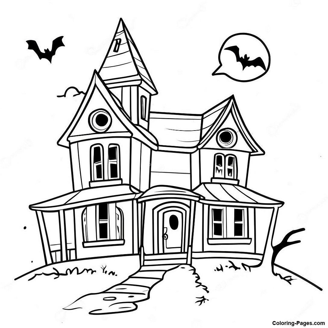 Spooky Haunted House Coloring Page