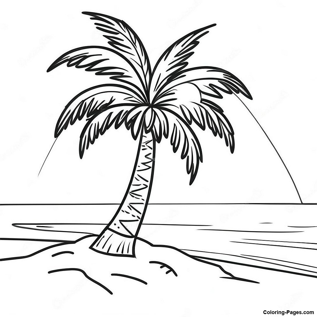 Download Printable PDF of Sunny Beach Palm Tree Coloring Page