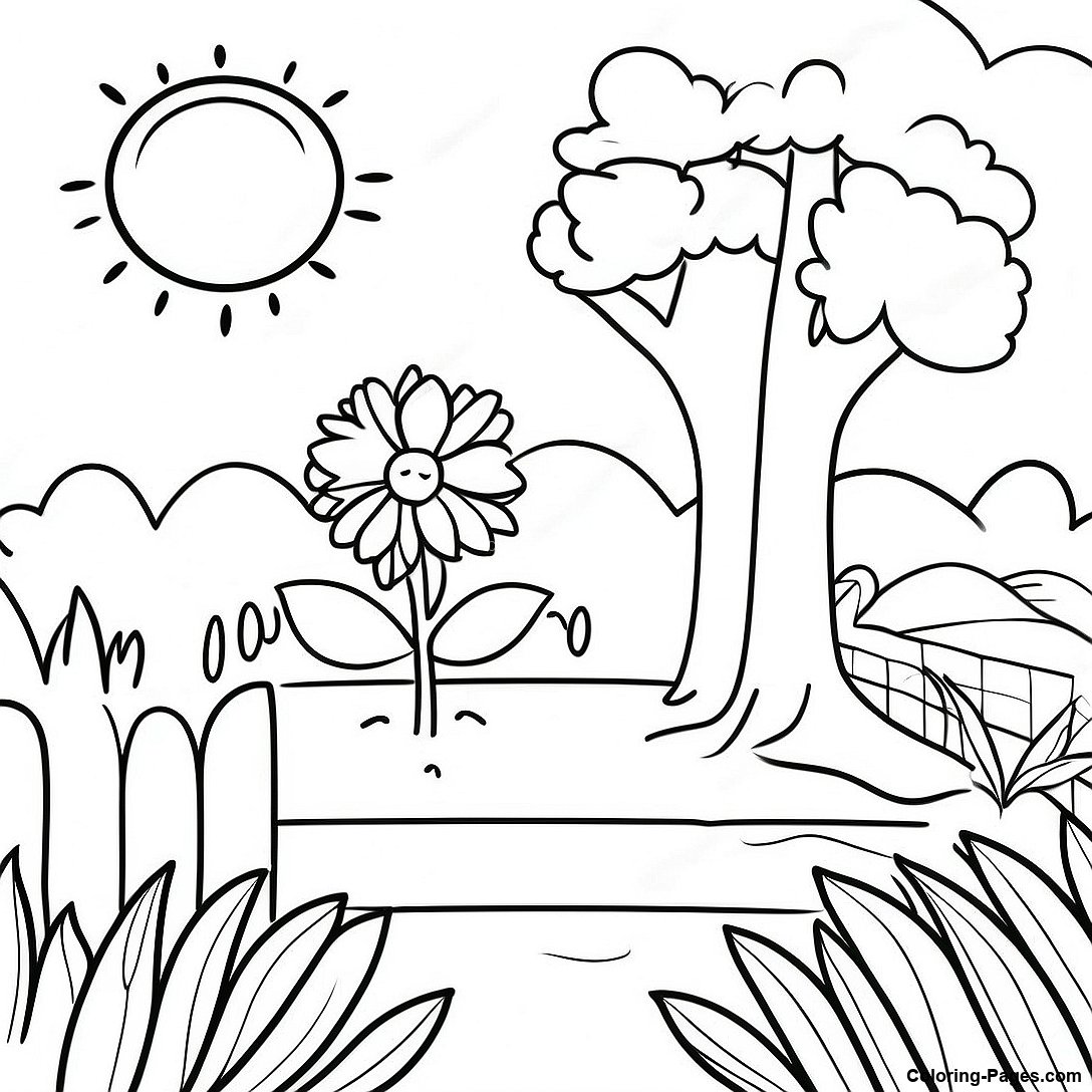 Download Printable PDF of Sunny Day Garden Scene Coloring Page