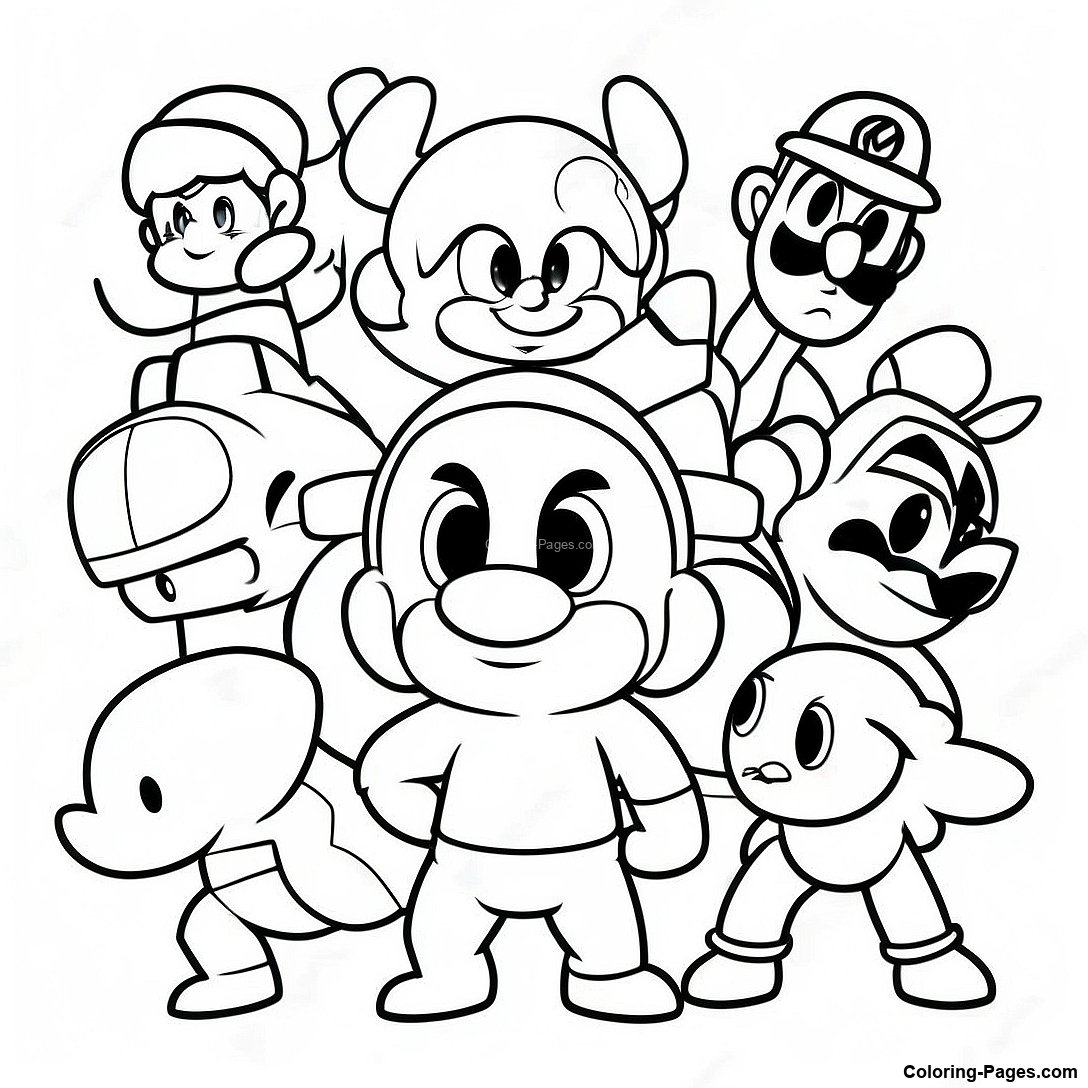 Download Printable PDF of Super Smash Bros Colorful Characters Coloring Page