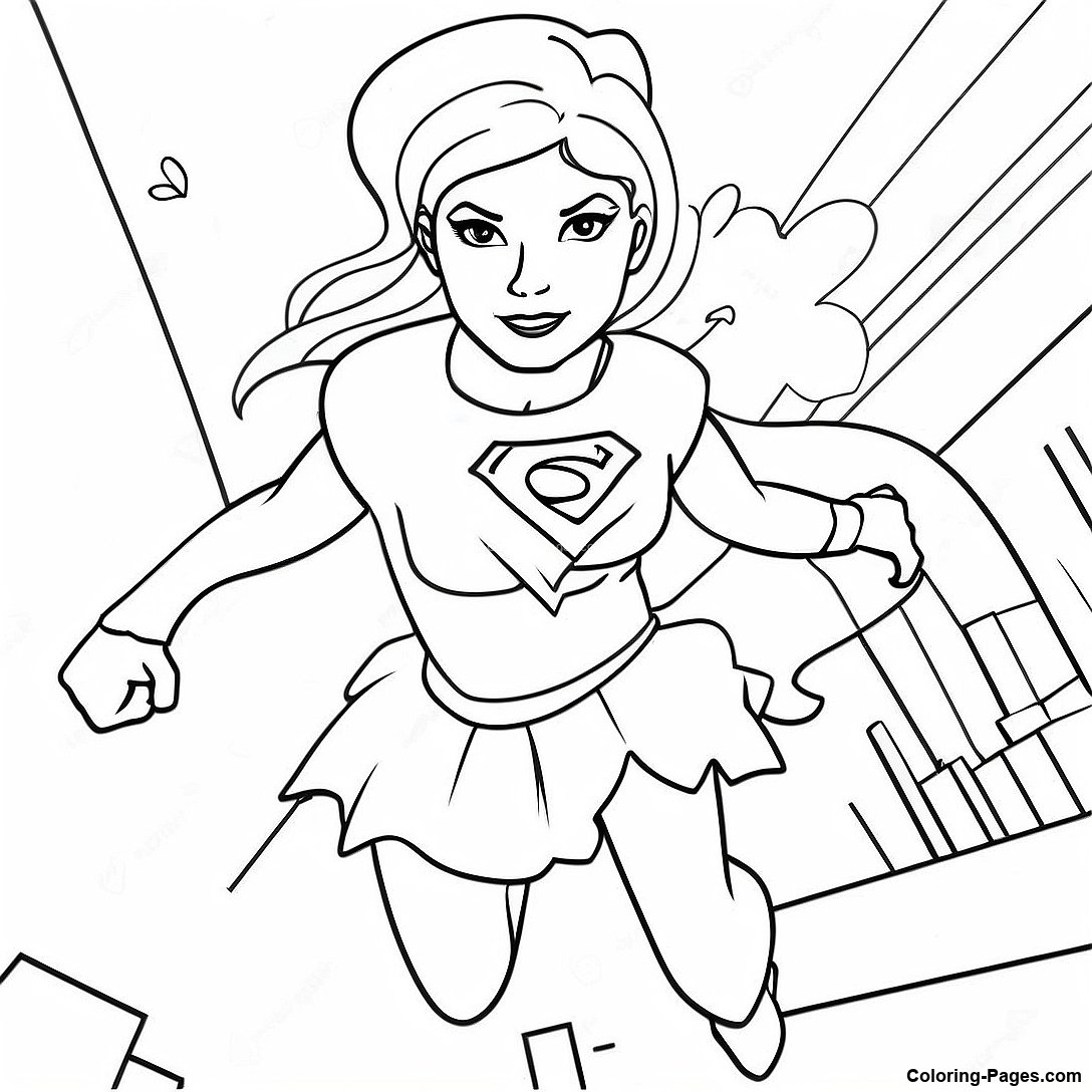 Supergirl in Action Pose Coloring Page
