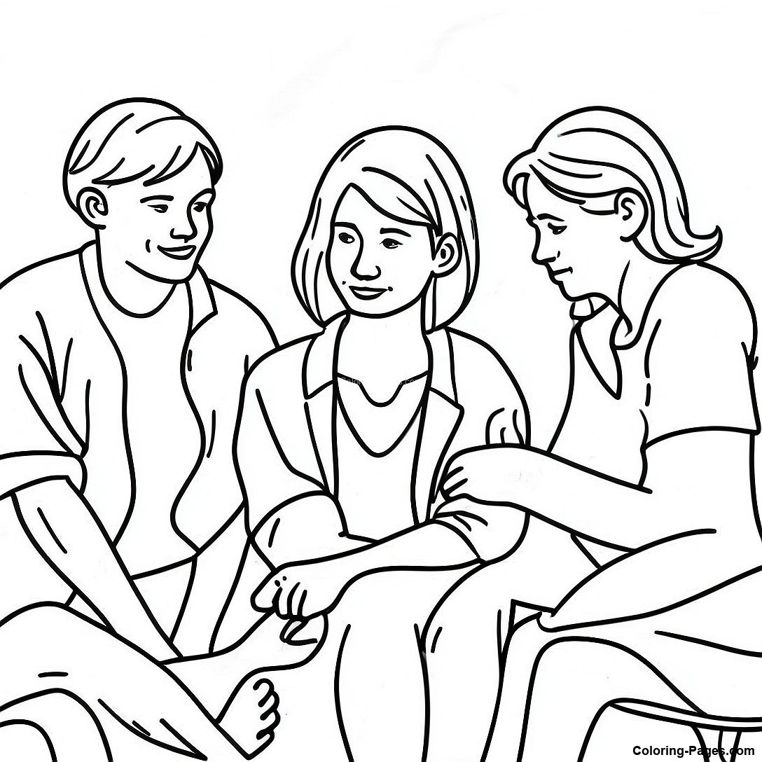 Download Printable PDF of Supportive Friends In Addiction Recovery Coloring Page