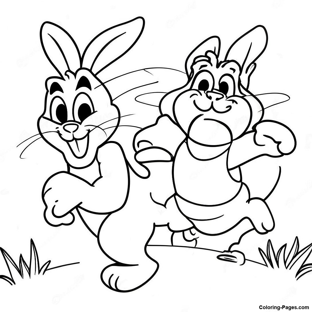Taz Chasing Bugs Bunny Coloring Page