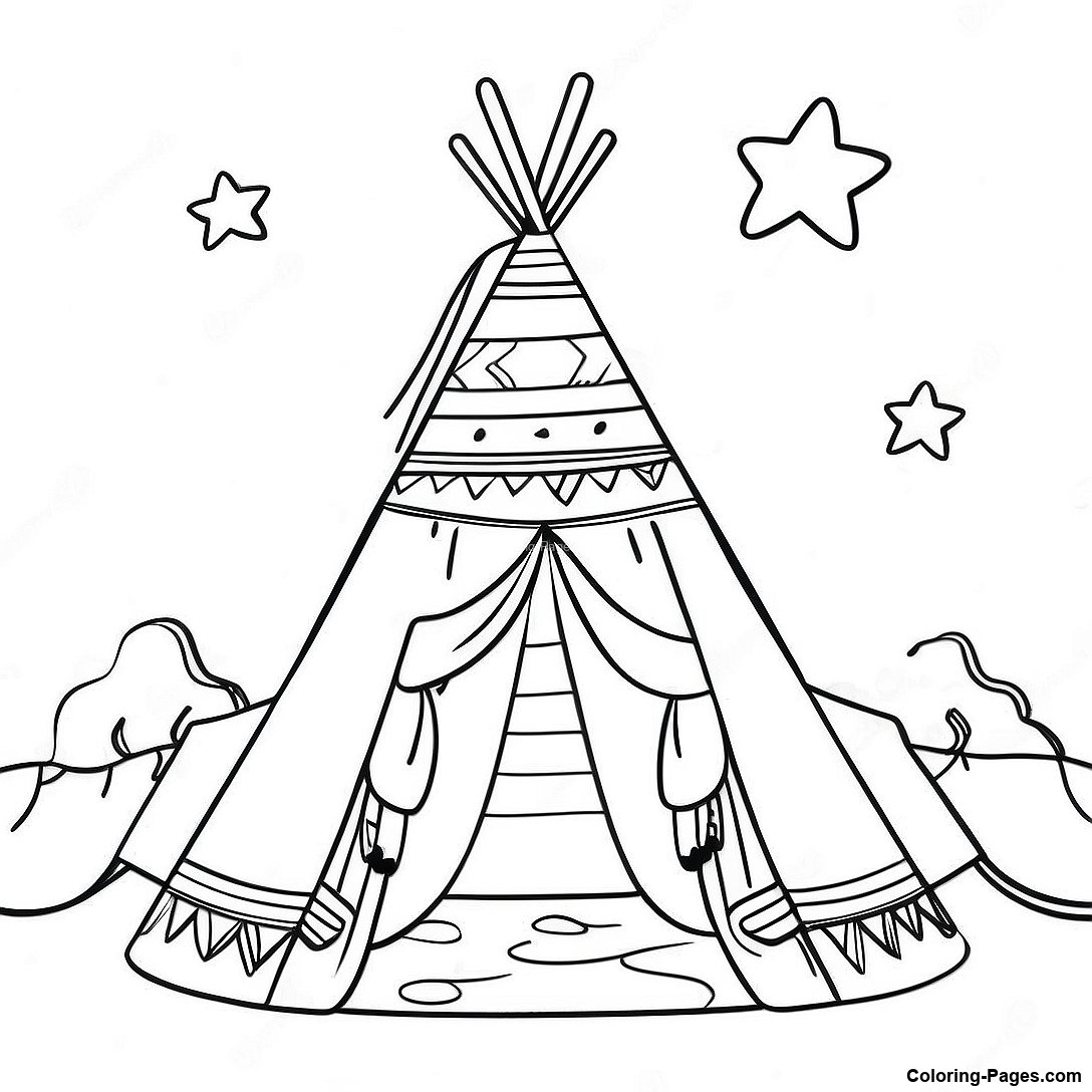 Download Printable PDF of Teepee Under A Starry Sky Coloring Page