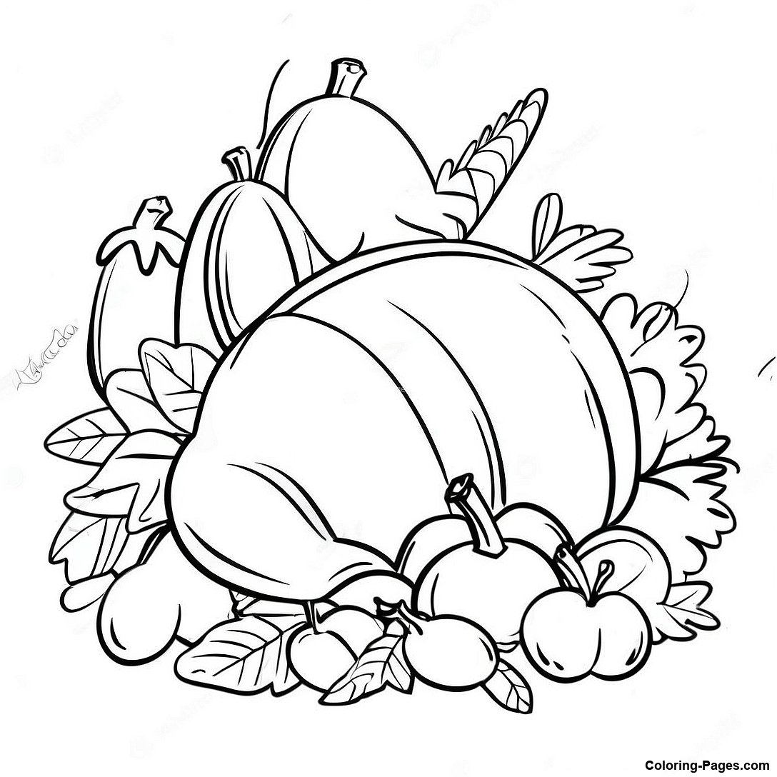 Download Printable PDF of Thanksgiving Cornucopia Coloring Page