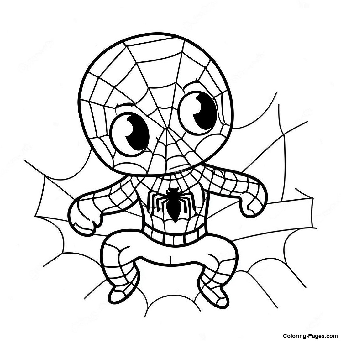 Tiny Baby Spiderman With Webs Coloring Page