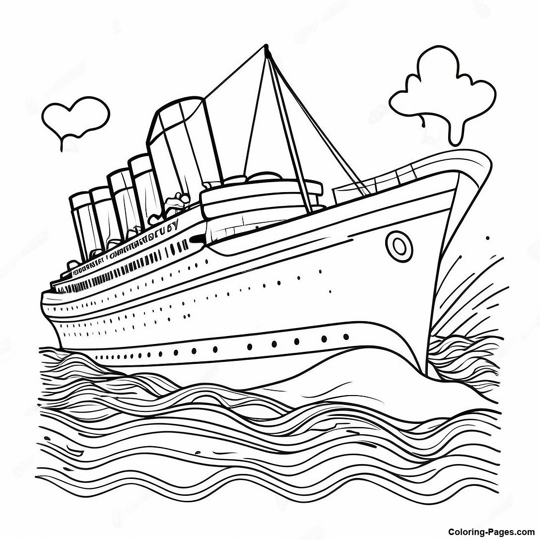 Download Printable PDF of Titanic Sinking Scene Coloring Page
