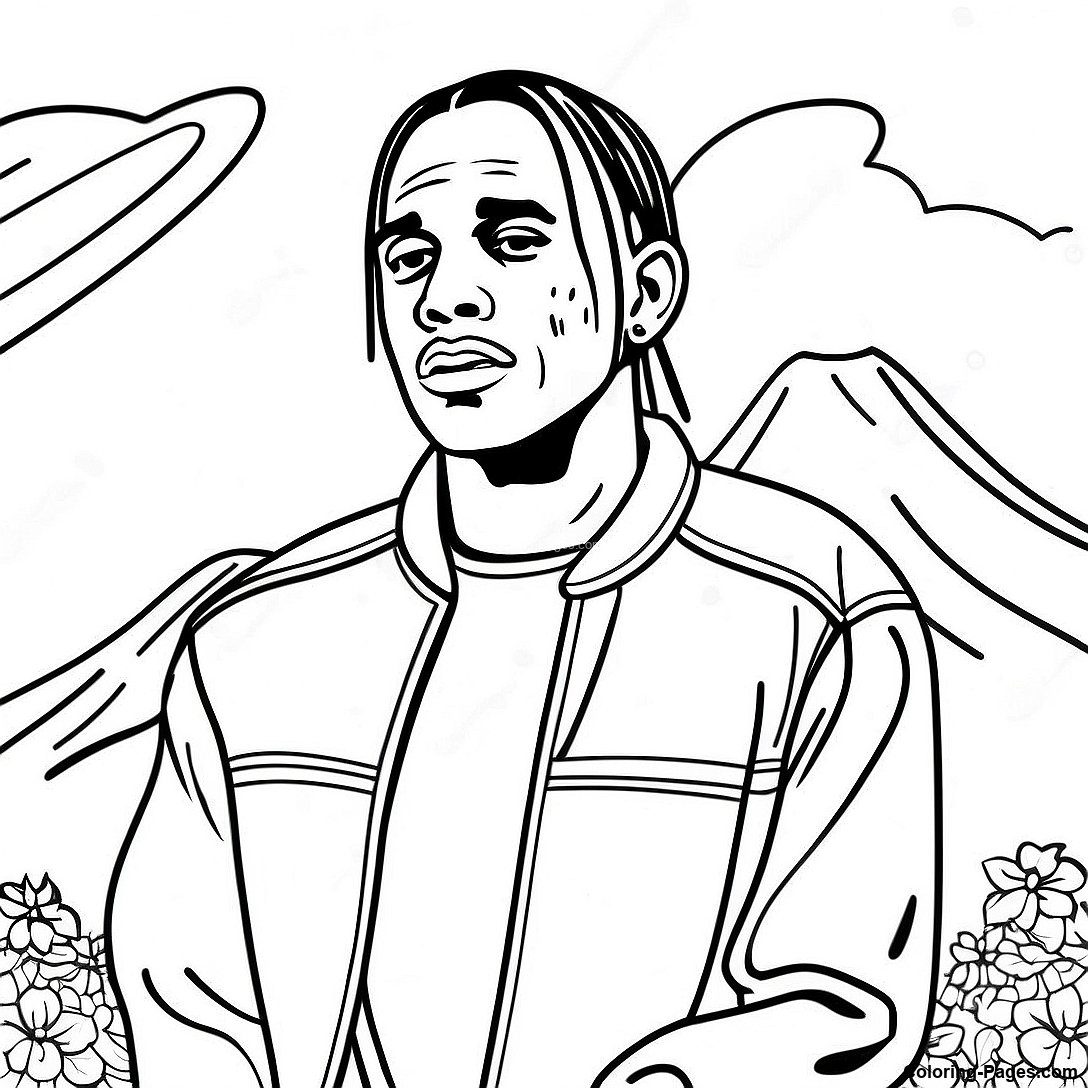 Download Printable PDF of Travis Scott With Astroworld Background Coloring Page
