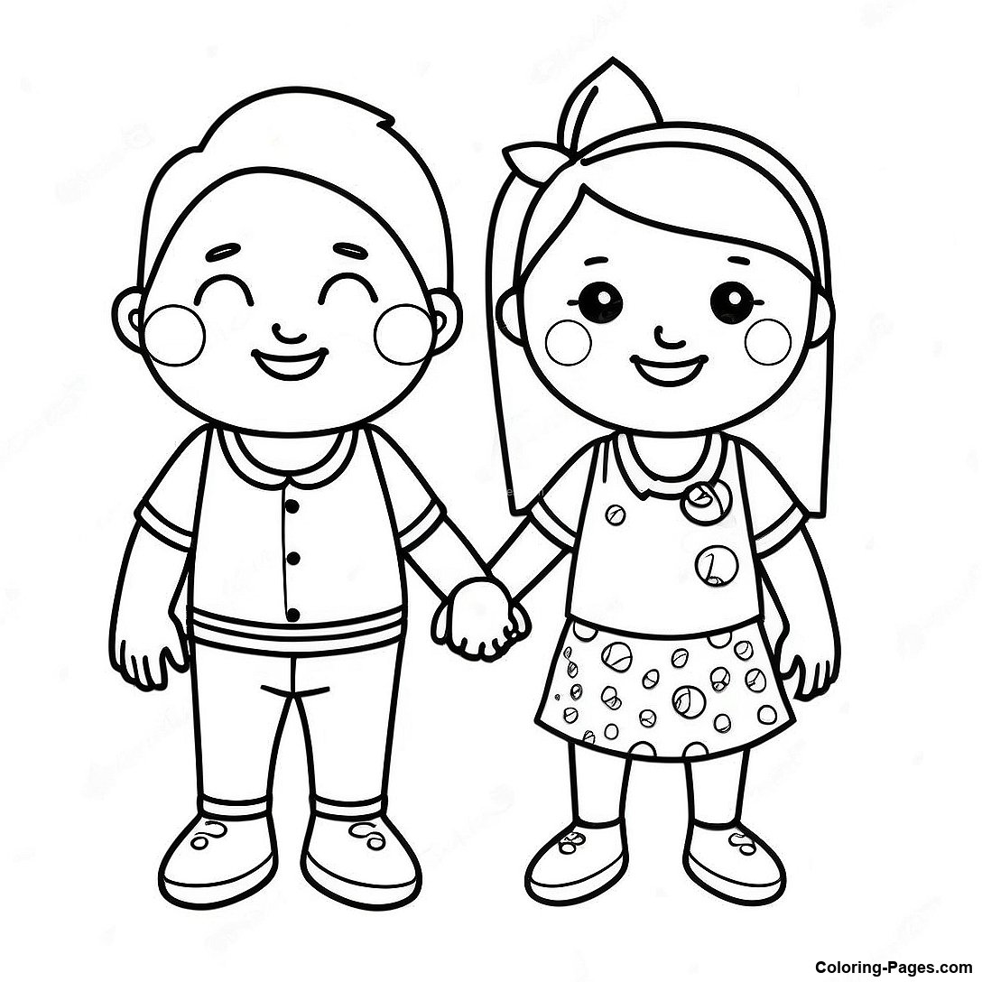 Two Best Friends Holding Hands Coloring Page