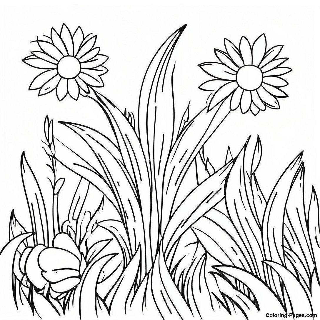 Download Printable PDF of Vibrant Grass And Flowers Coloring Page