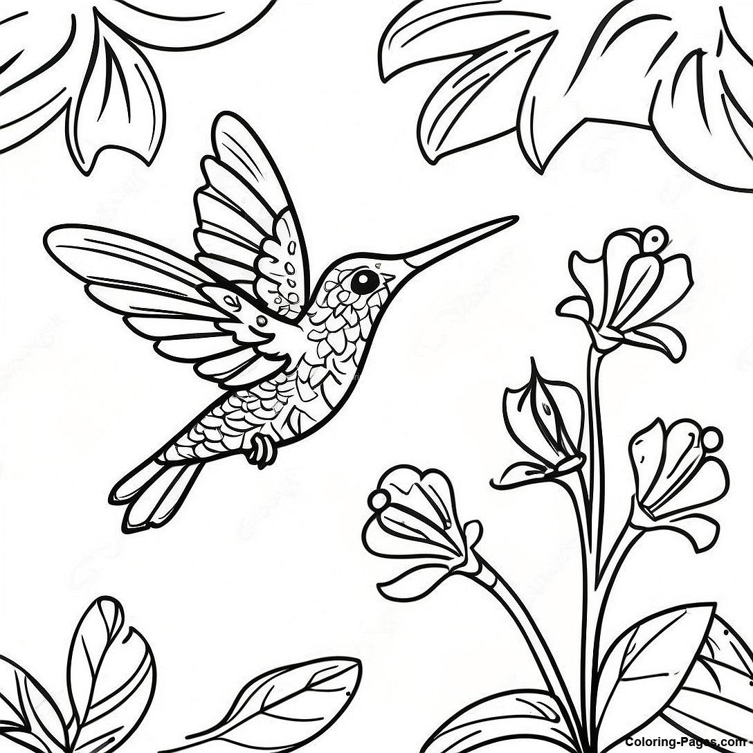 Vibrant Hummingbird With Tropical Background Coloring Page