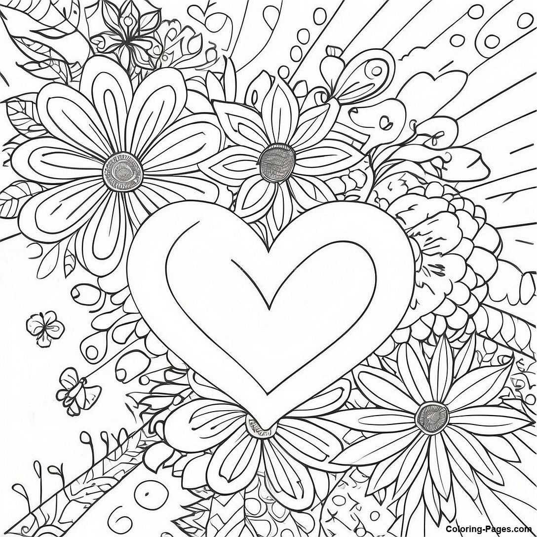 Download Printable PDF of Vibrant Love Flowers Coloring Page