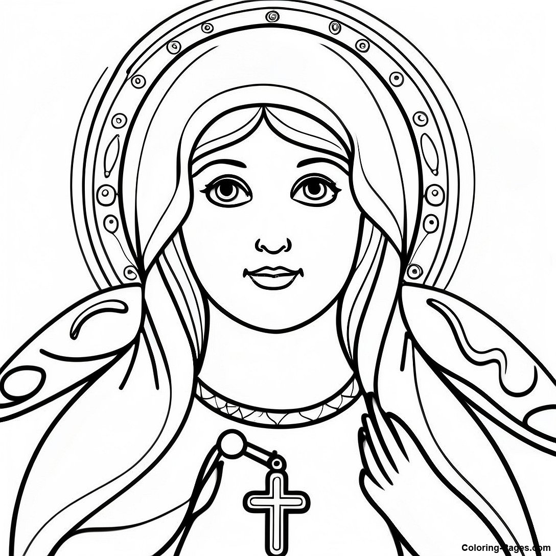 Download Printable PDF of Virgin Mary Holding A Rosary Coloring Page