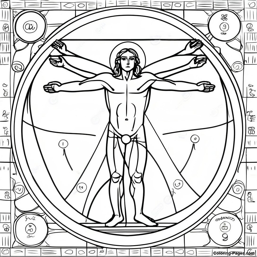 Vitruvian Man With Detailed Anatomy Coloring Page