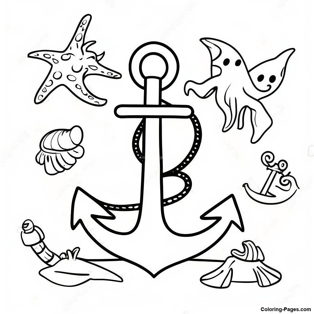 Download Printable PDF of Whimsical Anchor With Sea Creatures Coloring Page