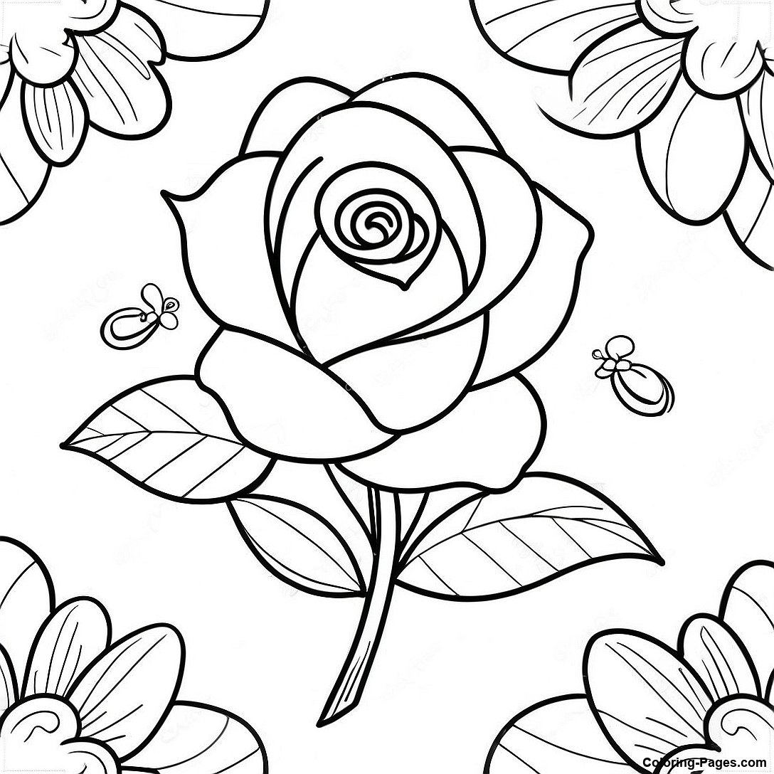 Whimsical Cartoon Rose Coloring Page