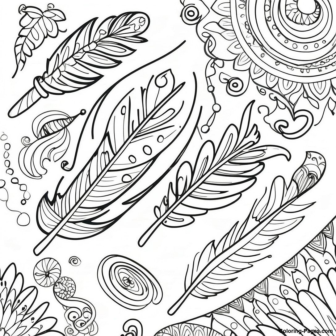 Whimsical Feather Doodles Coloring Page