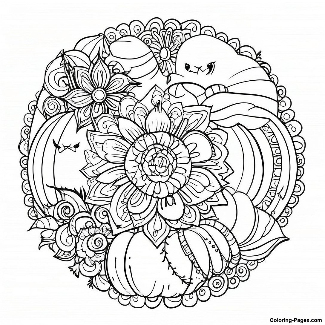 Download Printable PDF of Whimsical Halloween Mandala Coloring Page