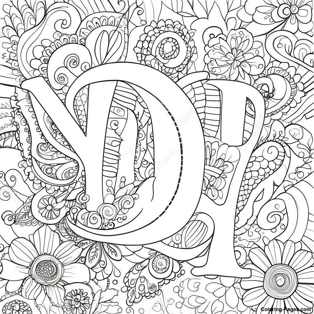 Download Printable PDF of Whimsical Lettering Coloring Page