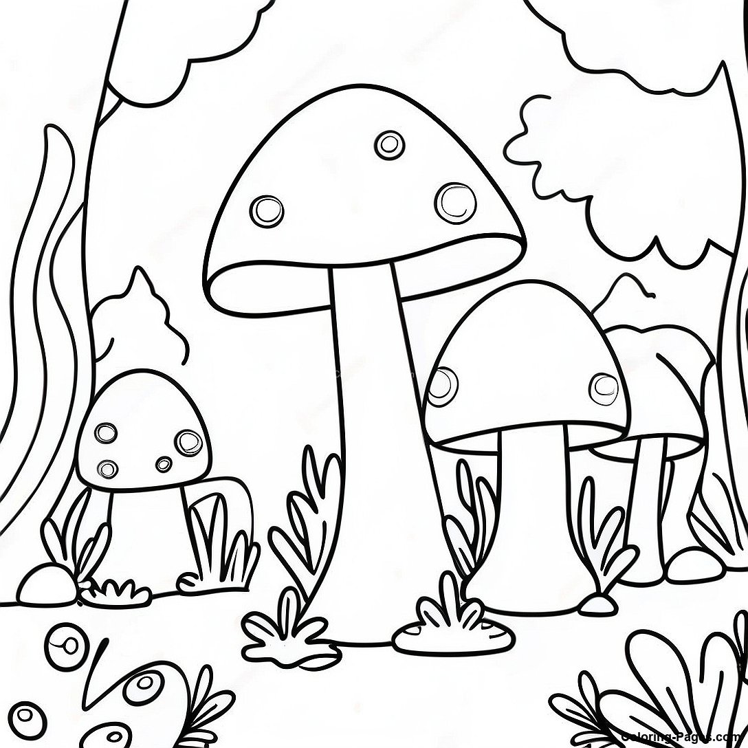 Download Printable PDF of Whimsical Mushroom Forest Coloring Page