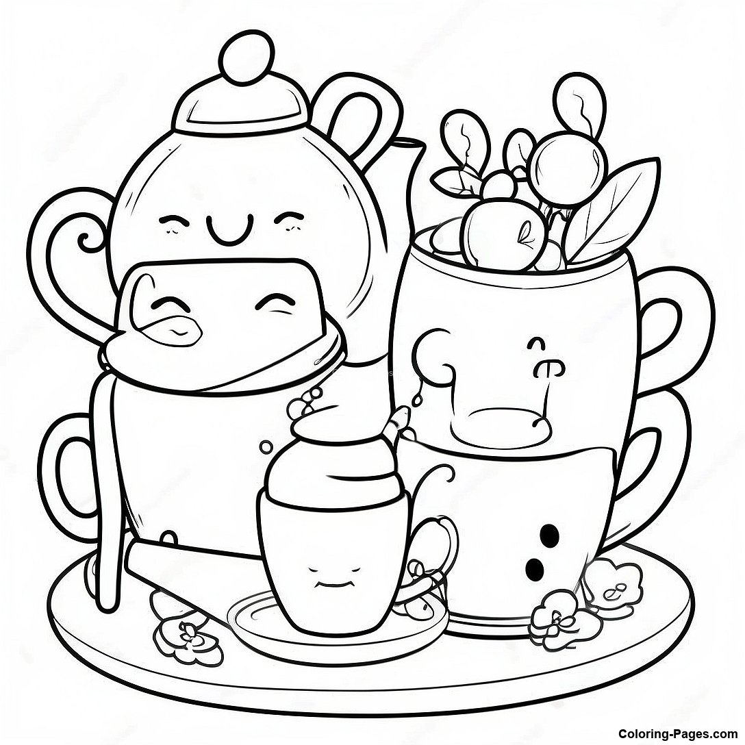 Download Printable PDF of Whimsical Tea Party Coloring Page
