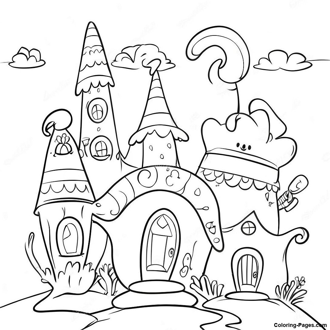 Download Printable PDF of Whimsical Whoville Houses Coloring Page