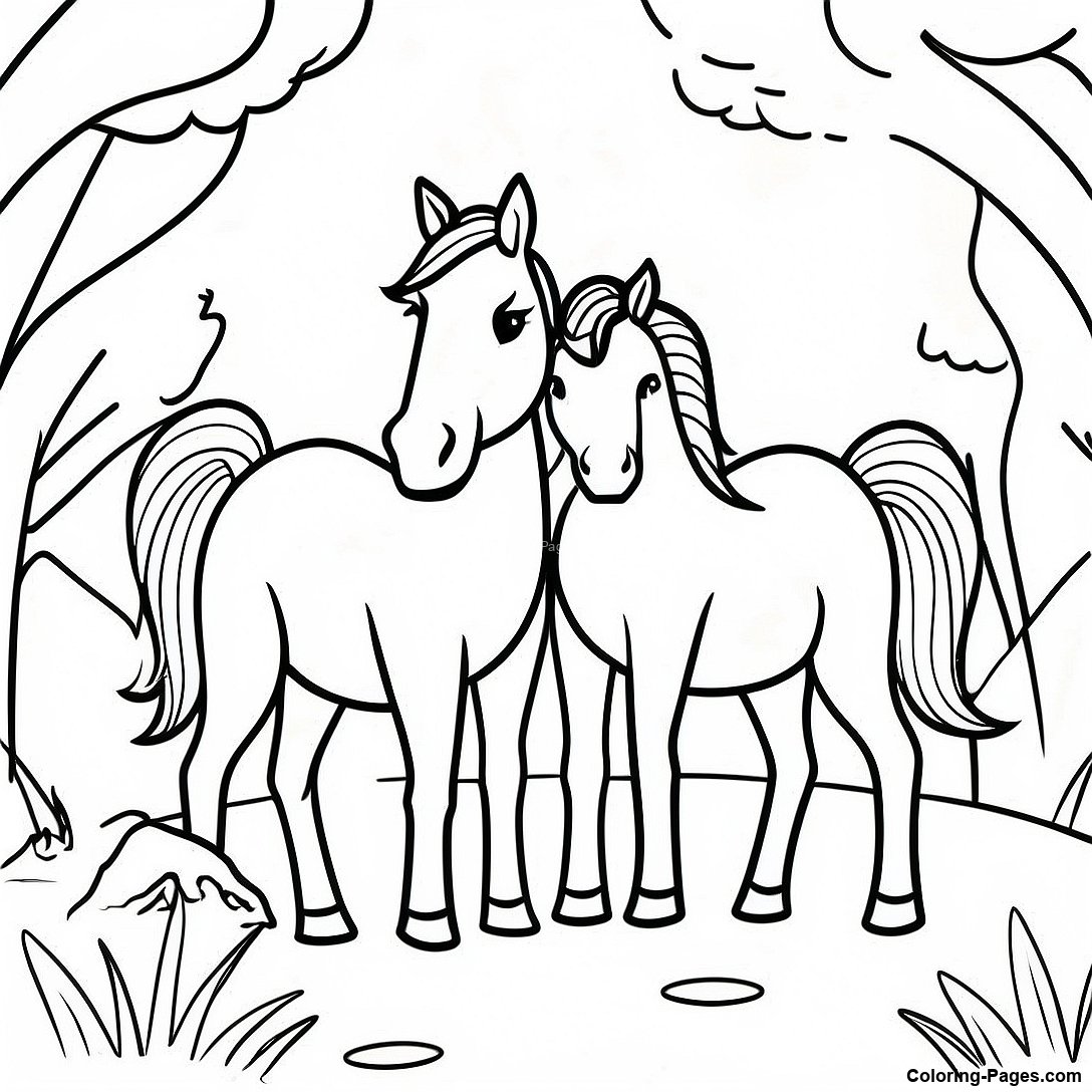 Wild Horse Family In Nature Coloring Page