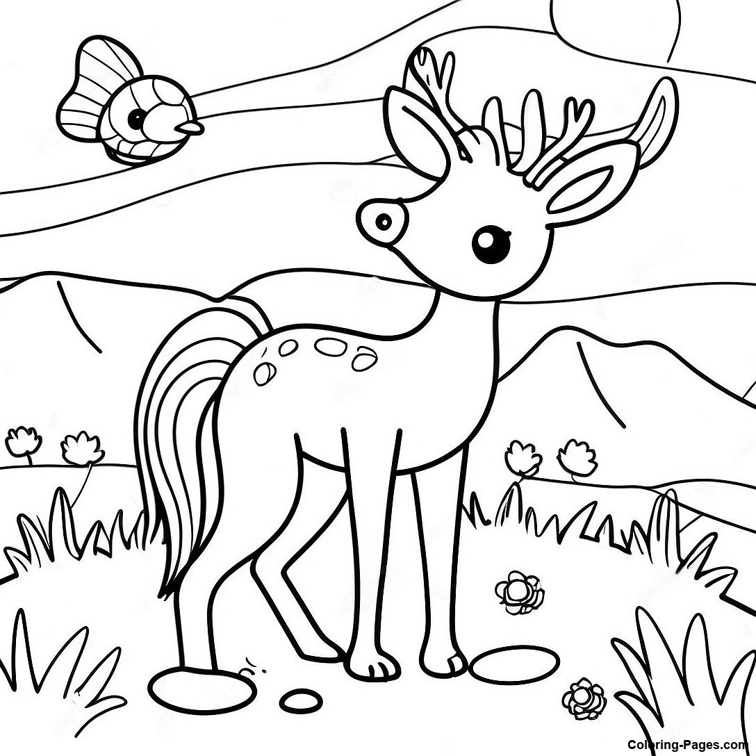 Nature Cat Exploring a Vibrant Garden Coloring Page