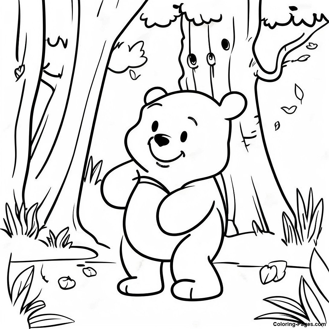 Winnie The Pooh In The Forest Coloring Page