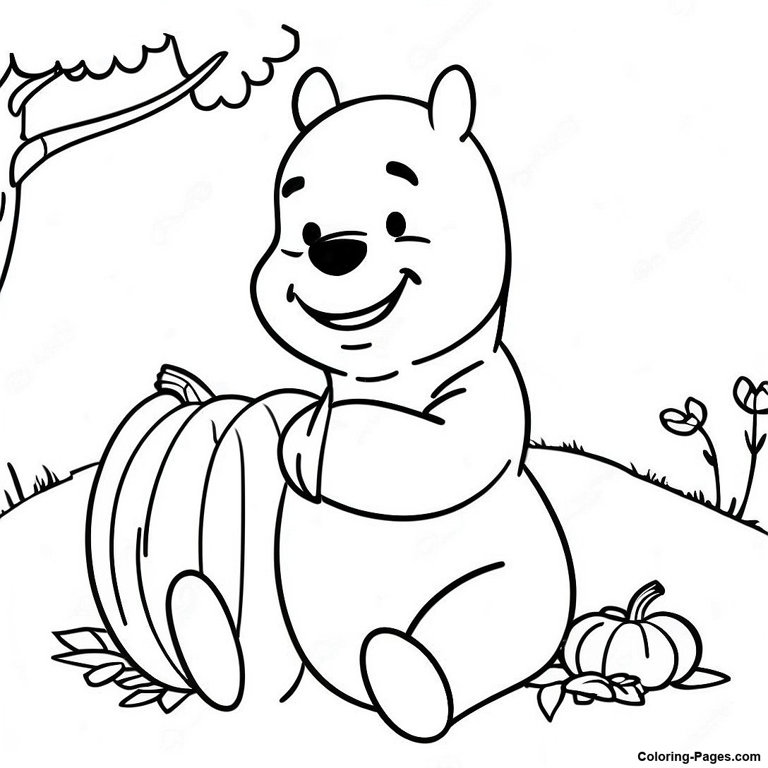 Download Printable PDF of Winnie The Pooh With Pumpkin Coloring Page