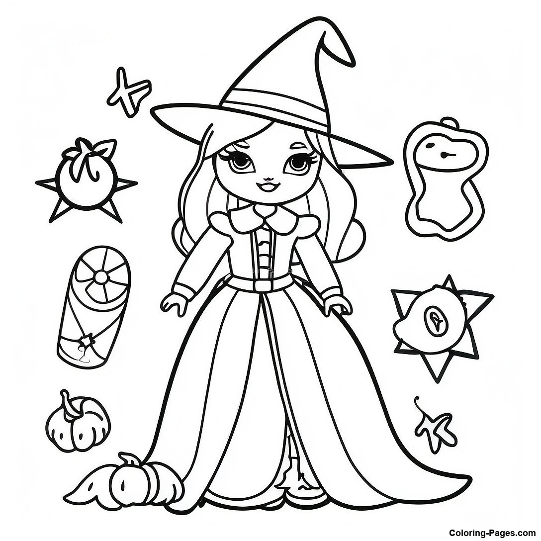Download Printable PDF of Witch Costume Barbie Coloring Page