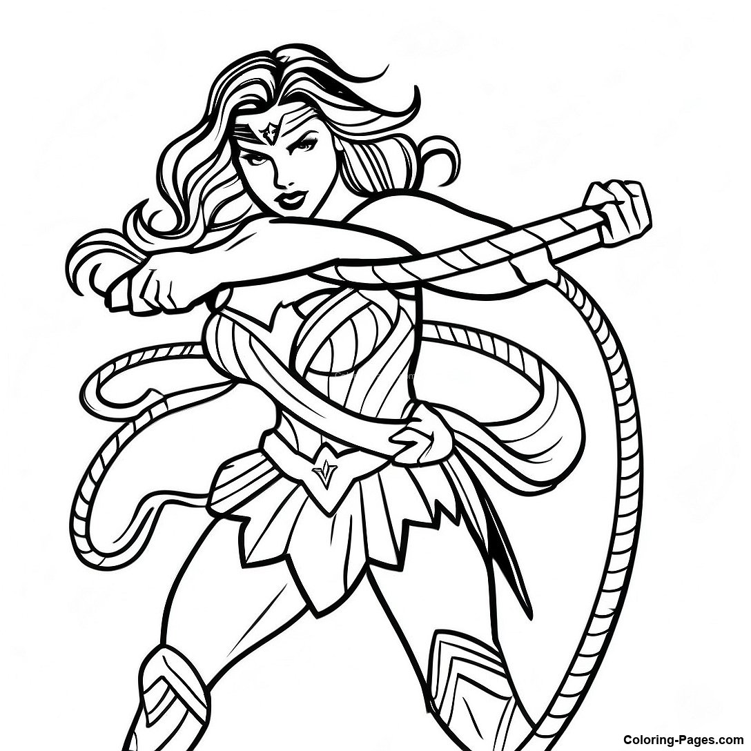 Download Printable PDF of Wonder Woman With Lasso Coloring Page