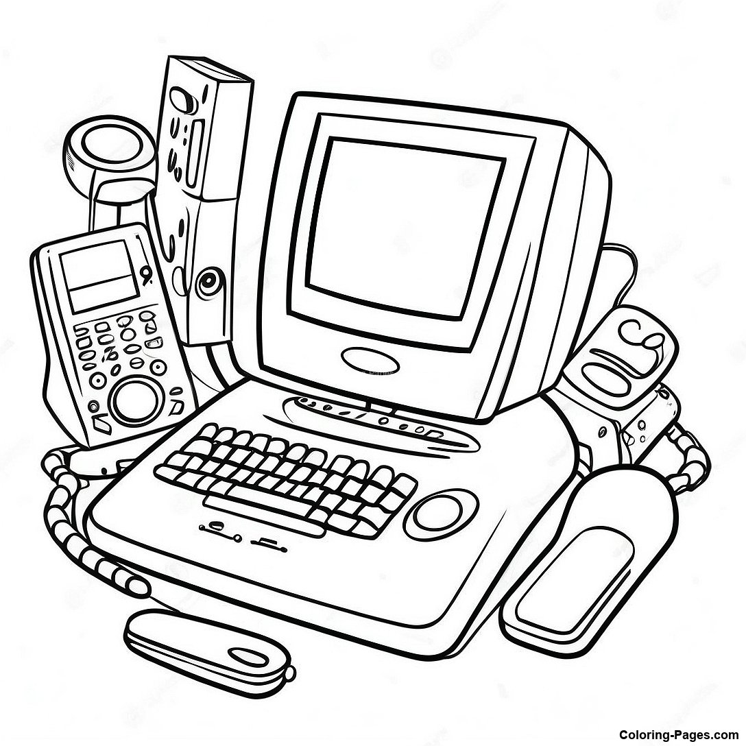 Download Printable PDF of Y2k Technology Gadgets Coloring Page